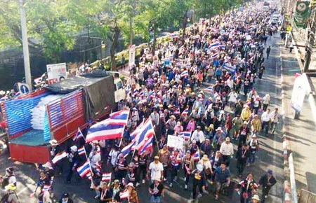 Đoàn người đông đảo tuần hành đến Bộ Phát triển xã hội và an ninh con người ở Bangkok ngày 15-1. Ảnh: BANGKOK POST