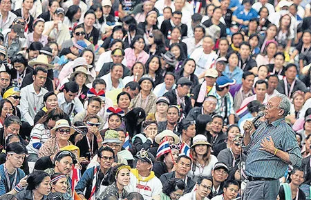 Tổng Thư ký Ủy ban Cải cách dân chủ nhân dân Suthep Thaugsuban phát biểu trước những người biểu tình chống chính phủ ngày 12-1. ảnh: BANGKOK POST