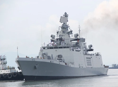 Chiến hạm INS SAHYADRI được trang bị nhiều khí tài hiện đại cập cảng Đà Nẵng.