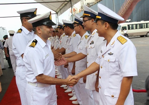 Đại diện lãnh đạo Bộ Tư lệnh Vùng 3 Hải quân, Bộ Tư lệnh Quân chủng Hải quân, Cục ối ngoại (Bộ Quốc phòng), Bộ Tư lệnh Quân khu 5, Bộ Chỉ huy Bộ đội biên phòng TP Đà Nẵng... đã ra tận cầu cảng đón tàu. Về phía Ấn Độ có Đại tá P.L.Punia - tùy viên quân sự Ấn Độ tại Việt Nam và đại diện Đại sứ quán Ấn Độ tại Việt Nam.