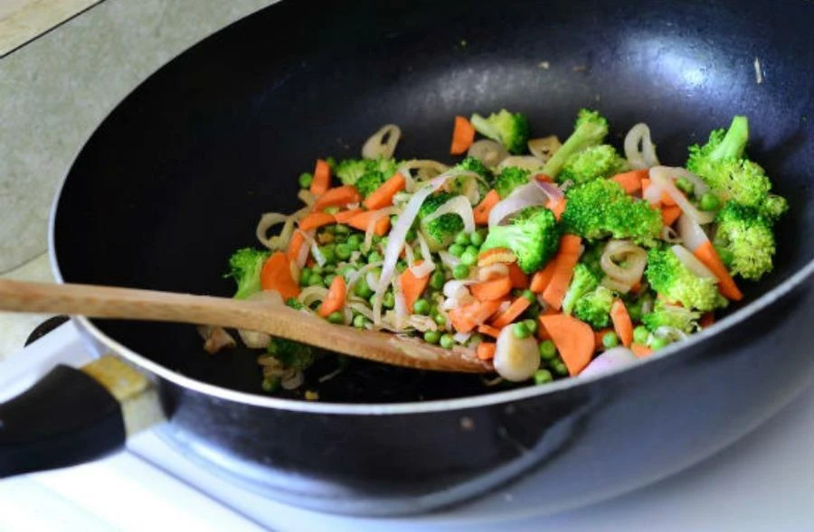 Xào có thể cải thiện sự hấp thu các vitamin tan trong dầu nhưng lại làm giảm vitamin C có trong rau xanh. Ảnh: Internet