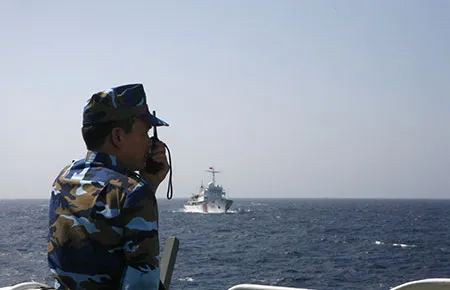 Cảnh sát biển Việt Nam bình tĩnh đối phó tàu Trung Quốc tại khu vực Trung Quốc đặt giàn khoan trái phép. Ảnh: REUTERS