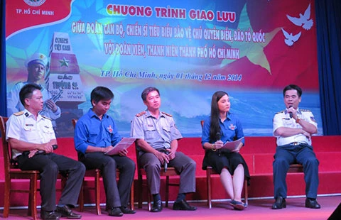Các cán bộ, chiến sĩ giao lưu với ĐH Sài Gòn tối 1-12. Ảnh: H.LAN