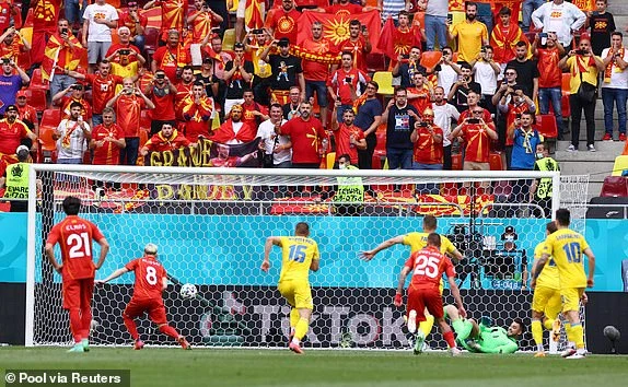 Tuy nhiên, trên chấm penalty, Malinovskyi không vượt qua sức ép từ những chiêu trò trên vạch vôi của thủ môn Dimitrievski khi cú sút của anh bị thủ môn của Macedonia đoán đúng hướng đẩy bóng ra.