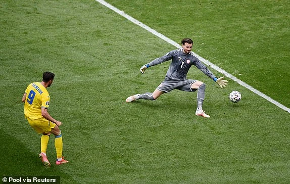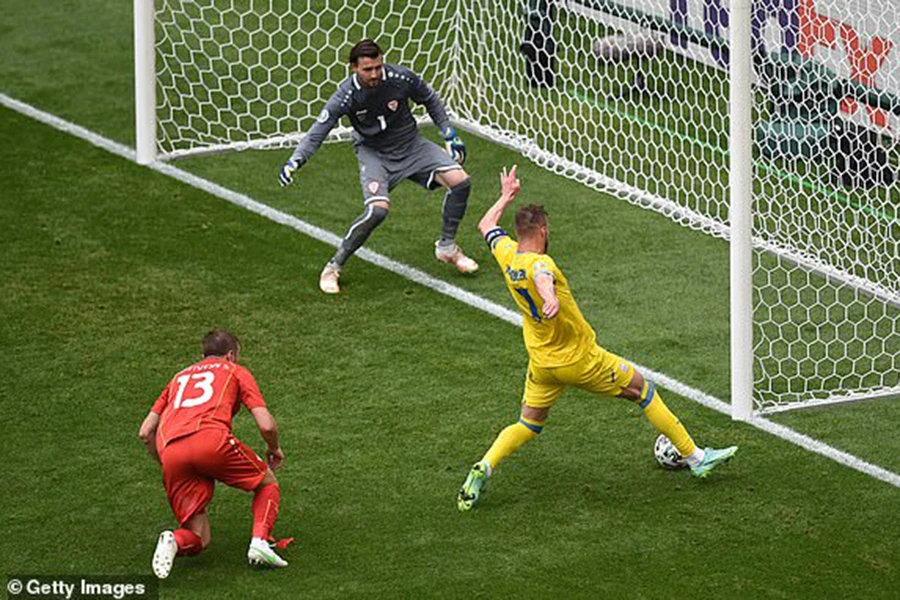 Bàn thắng thứ hai của Ukraine. ẢNH: REUTERS