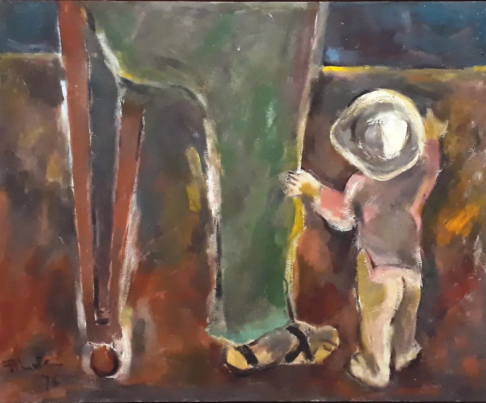 Bức tranh "Ta đi đi bố" được ông sáng tác năm 1976.