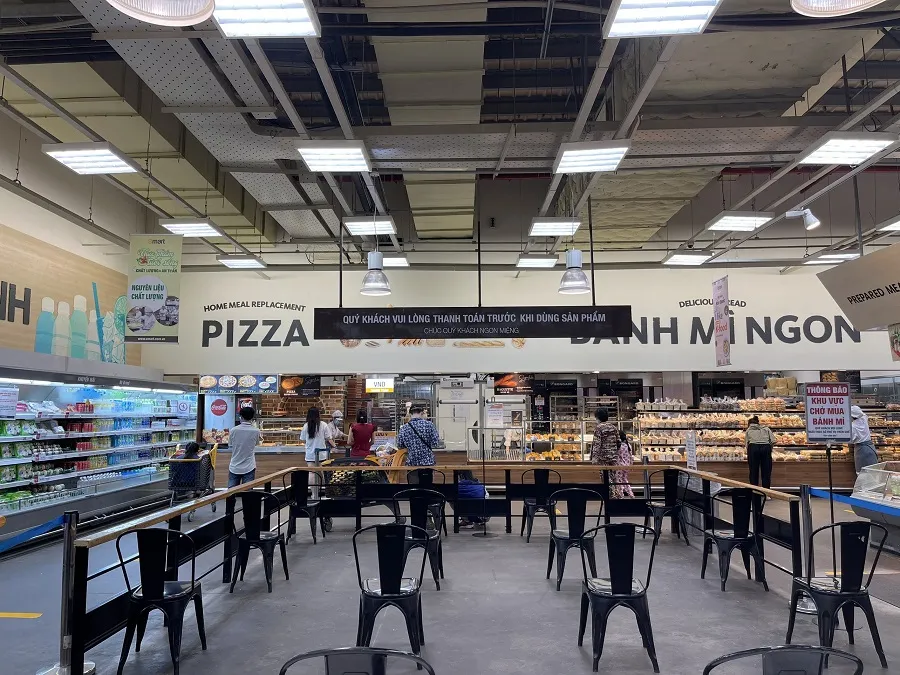 Khu vực thực phẩm chế biến bố trí ghế chờ cho khách hàng.