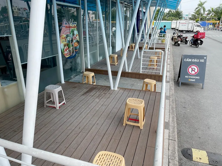 Khu vực khách hàng ngồi chờ trước khi vào siêu thị.