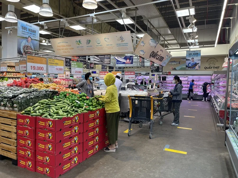 Siêu thị kiểm soát chặt chẽ đảm bảo khoảng cách tối thiểu 4 m2/người.