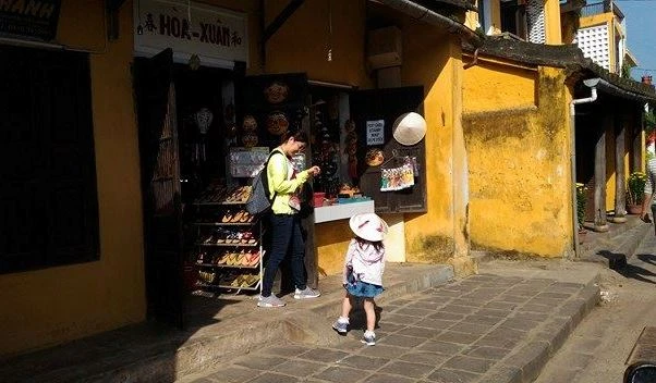Hai mẹ con người Hàn quốc thích thú khi vừa "tậu" được chiếc nón xinh. Chị cho biết đây là lần đầu tiên hai mẹ con đến với Hội An. "Nghe về Tết Việt Nam, tôi cũng rất thích nên quyết tâm đến vào dịp Tết để cảm nhận được Tết cổ truyền của Việt Nam".