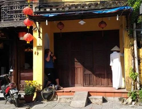Chàng "du khách Tây" đang say sưa chụp ảnh cho một "người mẫu Ta" trong tà áo dài truyền thống