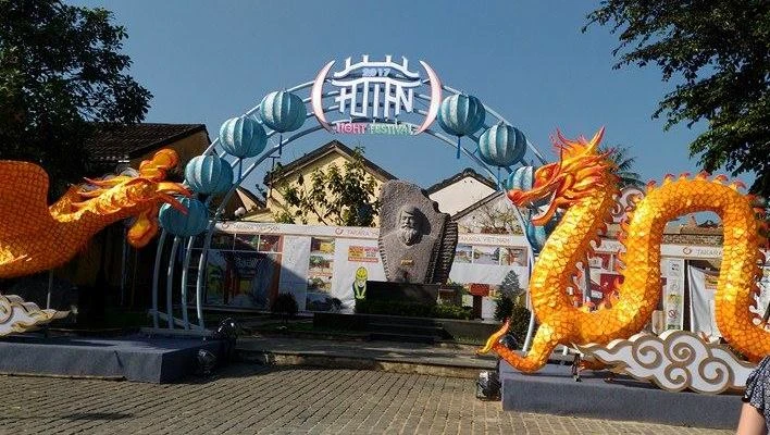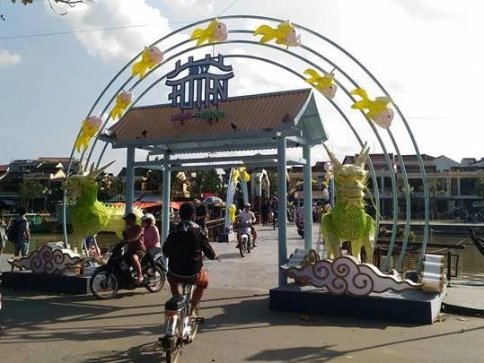 Như mọi năm, lễ hội đèn lồng vẫn được tổ chức hoành tráng tại phố cổ. Đôi rồng bằng đèn lồng ấn tượng ngay cổng vào phố cổ Hội An.