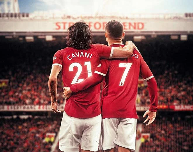 Cavani thích hợp chơi trong sơ đồ 4-4-2 đá cặp cùng Ronaldo. Ảnh: CGI.