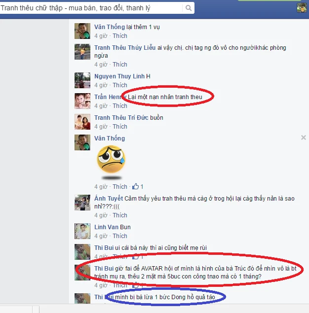 Các chủ thuê thêu tranh thậm chí còn dùng địa chỉ giả của người khác để lừa thợ thêu.Ngày 4-4, nick facebook Nhung Hoàng Trần tố cáo một người tên Nguyễn Vũ Bảo Ngọc dùng địa chỉ nhà của Nhung (79/42 Tân Hòa Đông, phường 14, quận 6, tp.HCM) để giao tranh cho thợ rồi biến mất. Trong khi đó, bản thân Nhung Hoàng Trần cũng là người kinh doanh tranh thêu.
