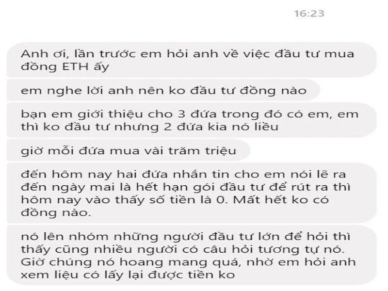 Cũng theo ông Khánh, ngay cả những người có kinh nghiệm về tài chính vẫn có thể thiệt hại tiền tỷ khi bị lừa.