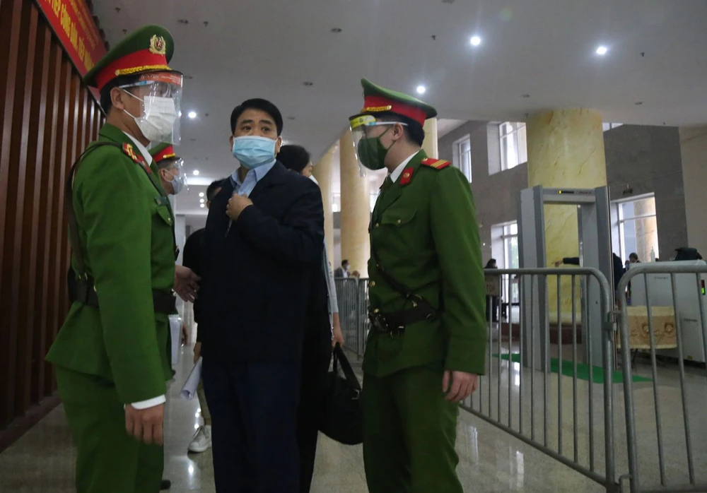 Ba bị cáo gồm Nguyễn Đức Chung (cựu chủ tịch UBND TP Hà Nội), Võ Tiến Hùng (cựu tổng giám đốc Công ty TNHH MTV Thoát nước Hà Nội) và Nguyễn Trường Giang (giám đốc Công ty TNHH Thương mại dịch vụ Arktic).