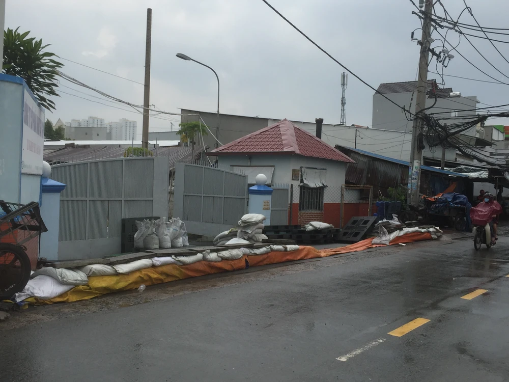 Ông Lê Minh Phong, Bí thư Đảng ủy phường 16, cho biết: “Đây là đợt triều cường rất lớn nên chúng tôi huy động nhiều đơn vị để xây thêm tường gạch ngăn nước tràn qua mặt đường vào nhà dân”.