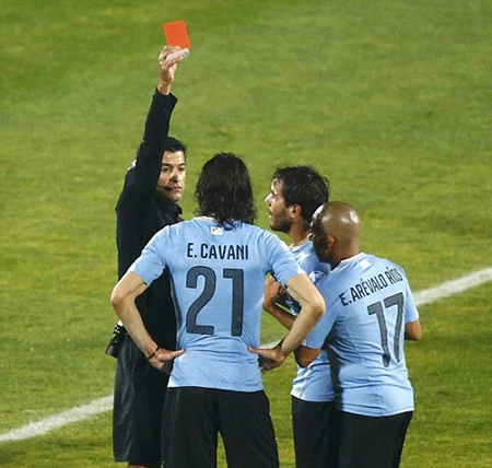 Điểm nhấn của trận đấu đến từ thẻ đỏ của Cavani.