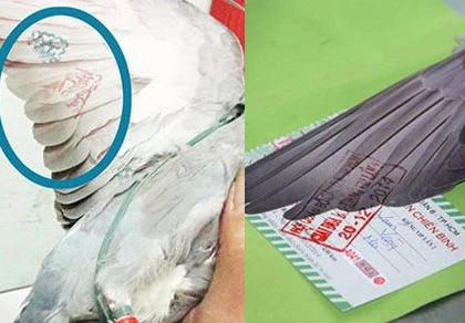 Chim bồ câu đua Trung Quốc và chim bồ câu đua Việt Nam trước khi tham gia cuộc đua đều có đóng dấu giáp lai trên cánh.