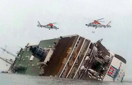 Một trong những tai nạn chìm phà thảm khốc nhất Hàn Quốc đã xảy ra ngày 16-4. Phà chở hành khách Sewol của Hàn Quốc đã bất ngờ bị nghiêng rồi chìm xuống biển.