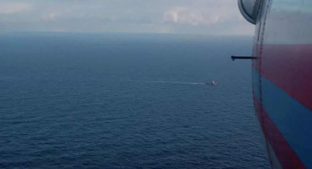 Tàu đánh cá Dalniy Vostok bị đắm vào sáng 2/4 ở vùng biển Okhotsk, ngoài khơi quần đảo Kamchatka, Nga (Ảnh : AP Photo/Bộ Tình trạng Khẩn cấp Nga)