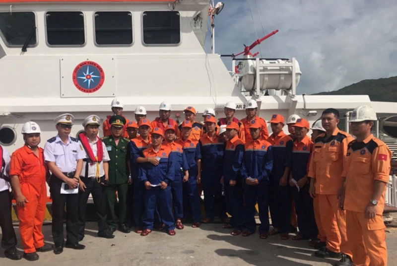 Các thuyền viên tàu Toàn Phát 68 được đưa vào bờ. Ảnh: Trung tâm Phối hợp tìm kiếm cứu nạn hàng hải Việt Nam.