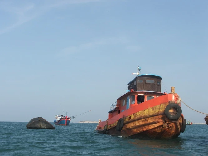 các tàu cứu hộ đang tham gia trục vớt một con tàu chìm ở vùng biển Kê Gà trước đây