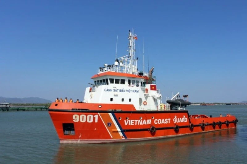 Tàu Cảnh sát biển 9001 (đóng tại Bà Rịa-Vũng Tàu) đang trên đường ra khơi cứu 10 ngư dân tỉnh Bình Định. (Ảnh minh họa)