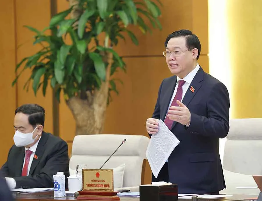 Chủ tịch Quốc hội Vương Đình Huệ tại phiên họp. Ảnh: DOÃN TẤN