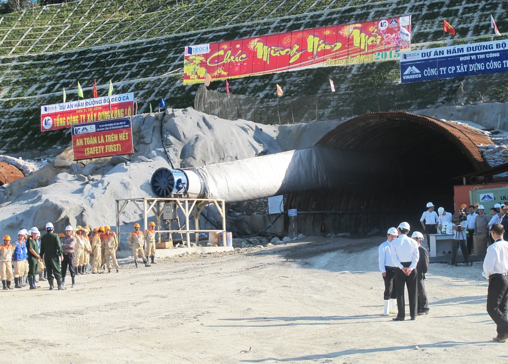 Hầm Đèo Cả đang được xây dựng. Ảnh: TẤN LỘC