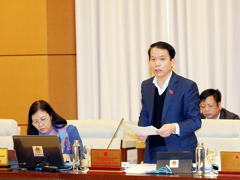 Chủ nhiệm Ủy ban Pháp luật Hoàng Thanh Tùng trình bày báo cáo thẩm tra về dự thảo luật. Ảnh: TTXVN