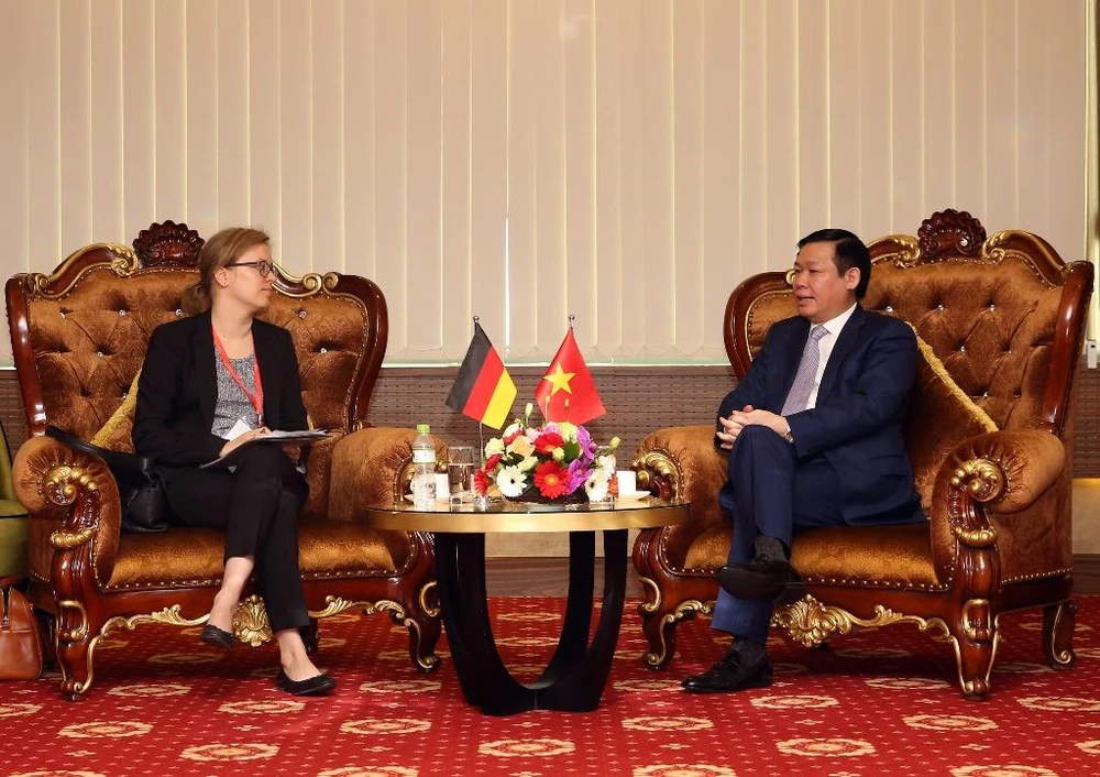 Phó Thủ tương Vương Đình Huệ tiếp bà Lucia Bergfeld, Bí thư thứ Nhất, Tham tán phát triển của Đại sứ quán Đức tại Việt Nam. Ảnh T.C