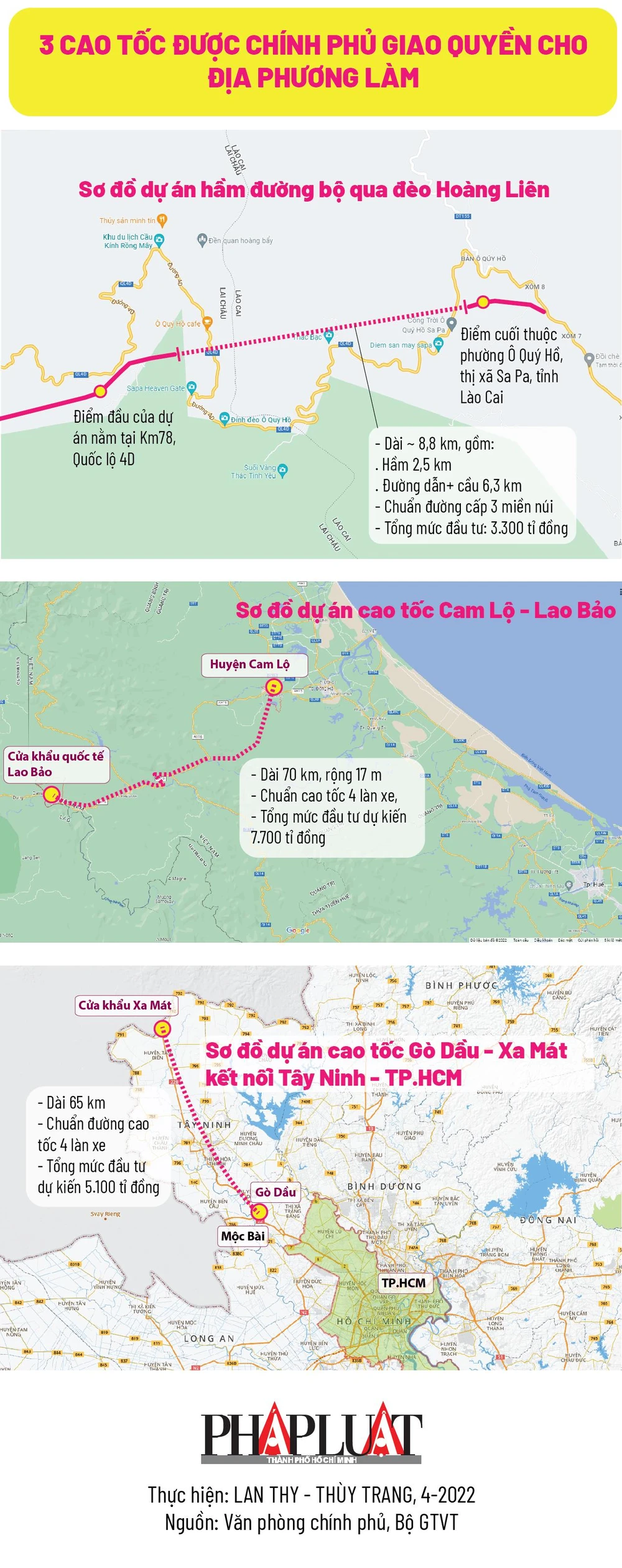 (PLO)- Mới đây, Văn phòng Chính phủ đã có thông báo kết luận nêu ý kiến của Phó Thủ tướng Lê Văn Thành về việc đồng ý giao UBND tỉnh Lai Châu, Quảng Trị và Tây Ninh là cơ quan có thẩm quyền triển khai thực hiện các dự án hầm đường bộ qua đèo Hoàng Liên, dự án đường bộ cao tốc Cam Lộ - Lao Bảo và cao tốc Gò Dầu - Xa Mát.
