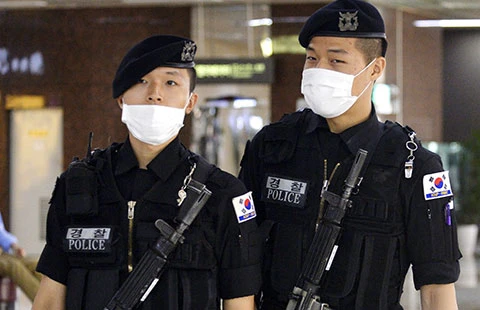 Cảnh sát ở sân bay Gimpo (Seoul). Ảnh: AP