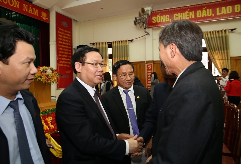 Phó Thủ tướng Vương Đình Huệ cùng các vị đại biểu Quốc hội tỉnh Hà Tĩnh đã tiếp xúc cử tri sau Kỳ họp thứ 4 tại huyện Đức Thọ. Ảnh: ĐL