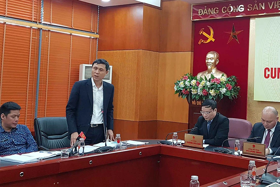 Ông Vũ Hải Nam, Vụ trưởng Vụ Tổ chức biên chế (đứng), cung cấp thông tin tại cuộc họp chiều 5-11. Ảnh: N.NHÂN