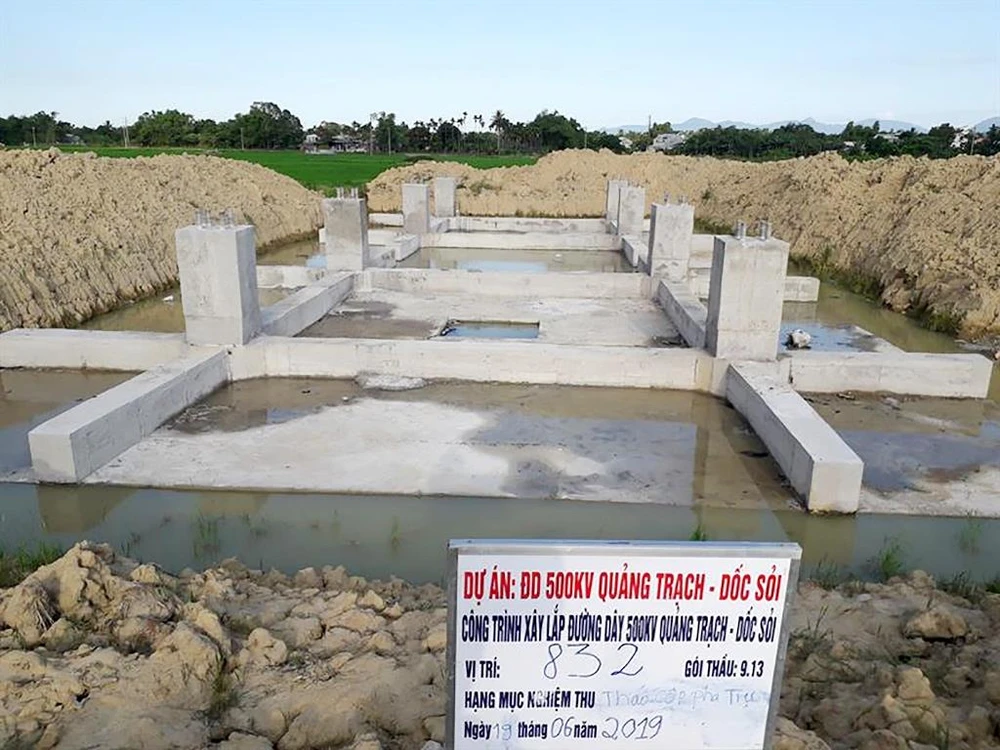 Hệ móng trụ đường dây 500 kV đoạn Quảng Trạch – Dốc Sỏi vẫn đang nằm chờ “mặt bằng sạch”.