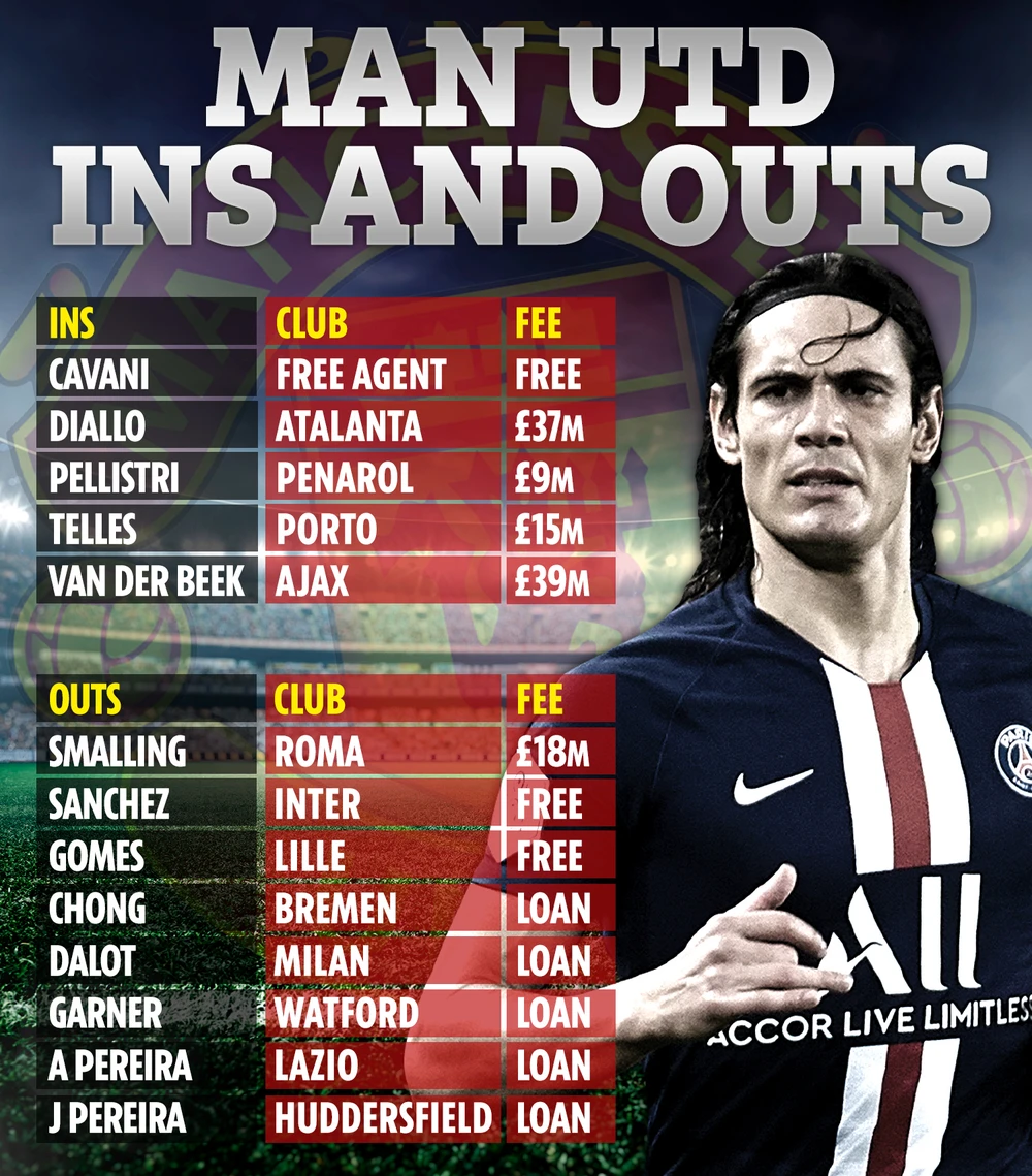 Những cầu thủ đến và đi khỏi MU trong kỳ chuyển nhượng qua. ẢNH: THE SUN