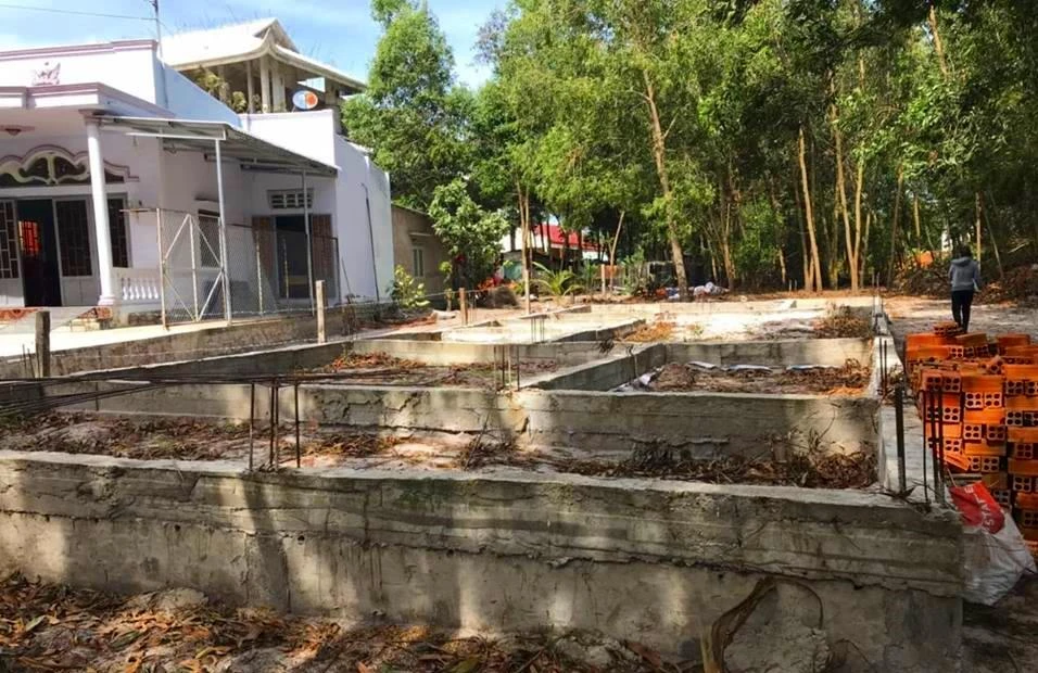 Móng nhà lấn chiếm của hàng xóm xây dựng trái phép trước đây.