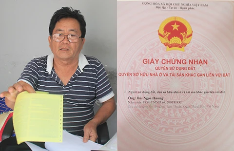 Ông Bùi Ngọc Hương và giấy đỏ bị phong tỏa. Ảnh: LÊ PHI