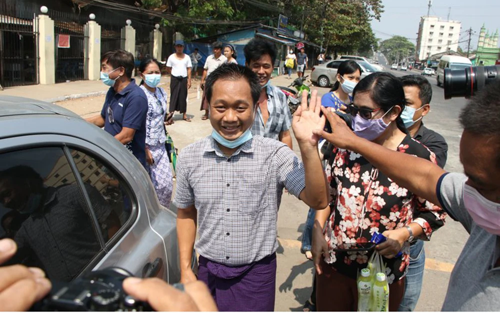 Phóng viên Thein Zaw của hãng tin AP được thả ngày 24-3 sau ba tuần bị bắt. Ảnh: AP