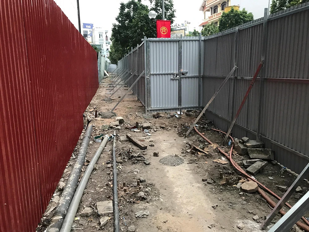 Hàng rào bao quanh cao ốc 8B Lê Trực vừa được UBND phường Điện Biên cho dựng lên.