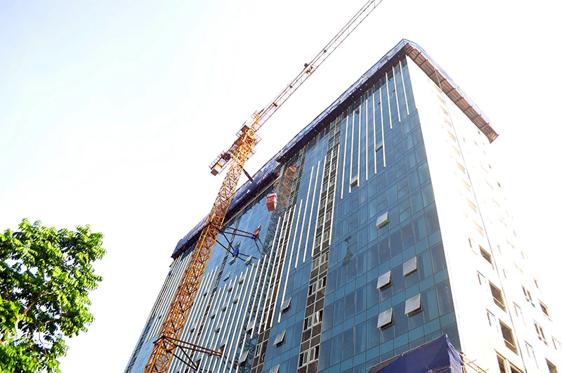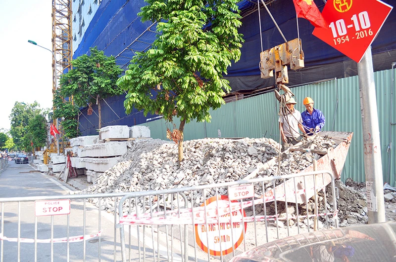 Hiện nay, đơn vị này đang bắt đầu tiến hành cắt khúc các cột bê tông tầng 19 và dùng cẩu trục tháp cả ngày lẫn đêm cẩu bê tông xuống mặt đất, hoàn thành toàn bộ trước ngày 30-10.