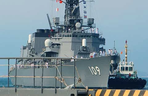 Tàu khu trục Ariake của Nhật đến cảng Cam Ranh ngày 12-4. Ảnh: JAPAN TIMES