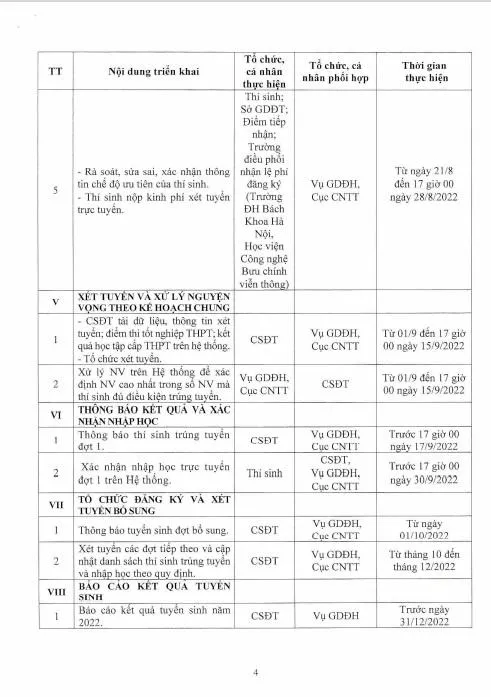 Từ 22-7 đến 20-8, thí sinh chính thức đăng ký xét tuyển và điều chỉnh nguyện vọng (không giới hạn số lần) trên hệ thống tuyển sinh của Bộ GD&ĐT. Đây cũng là thời gian thí sinh trúng tuyển thẳng có thể xác nhận nhập học trên hệ thống tuyển sinh của Bộ GD&ĐT và nhập học sớm tại các trường đại học.