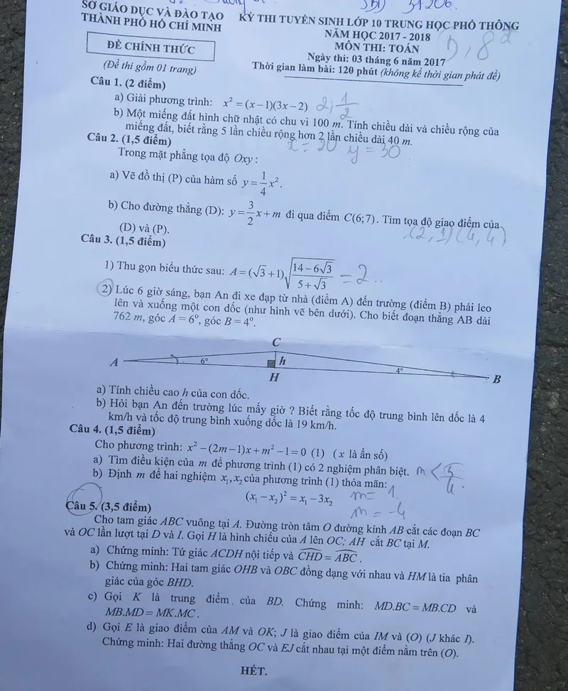 Đề thi toán lớp 10
