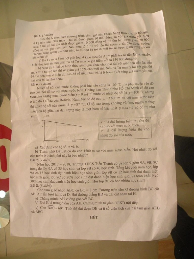 Đề thi môn toán.