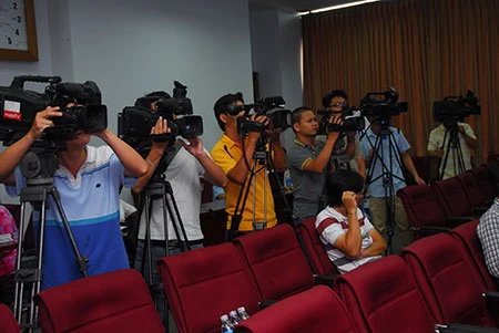 Các phóng viên, báo đài tác nghiệp tại buổi lễ công bố giải Fair Play 2016.