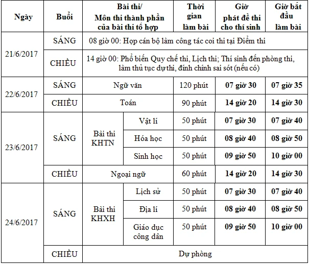 Lịch thi tốt nghiệp THPT quốc gia 2017
