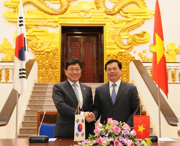 Bộ trưởng Bộ Công Thương Vũ Huy Hoàng và Bộ trưởng Bộ Thương mại, Công nghiệp và Năng lượng Hàn Quốc Yoon Sang-jick